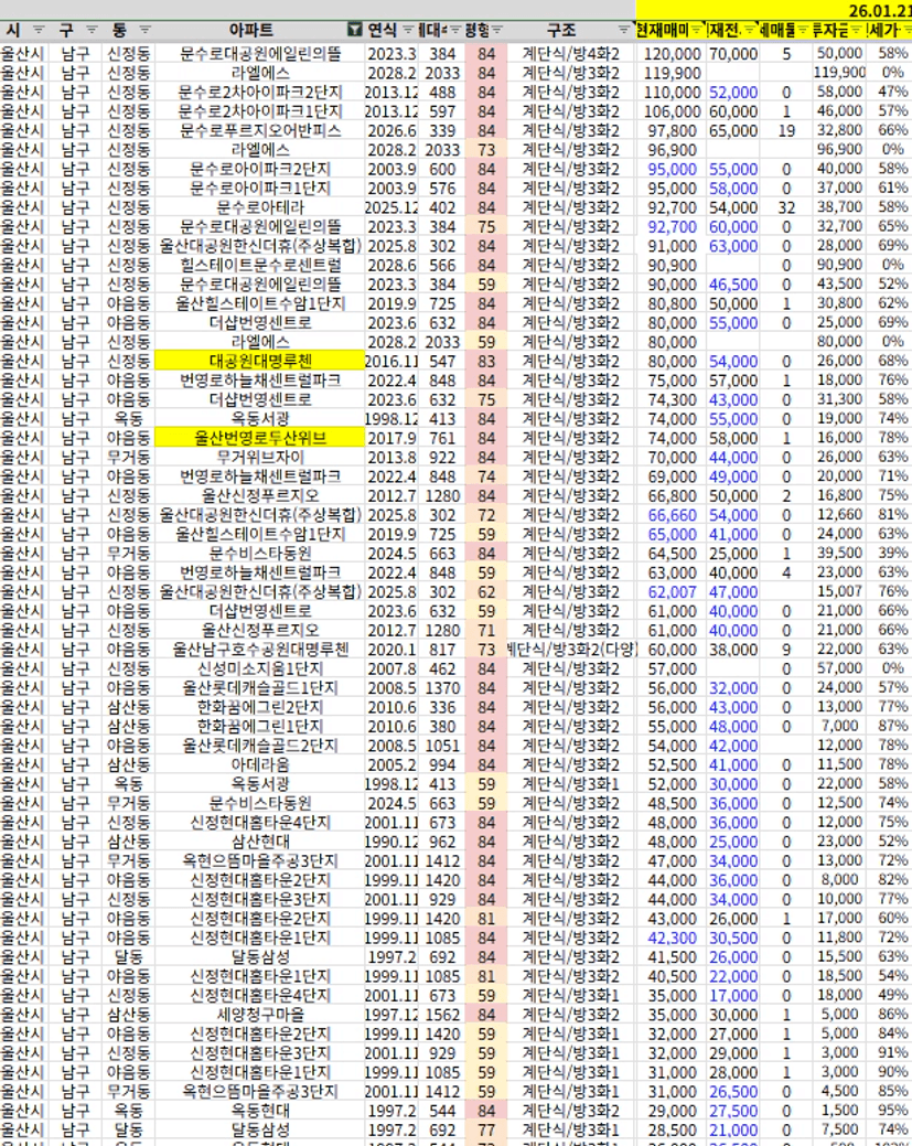 확실히 남구를 사람들이 좋아하니까 북구나 동구보다 훨씬 빨리, 많이 오르는 것 같음. 선호도 있는 구축까지도
