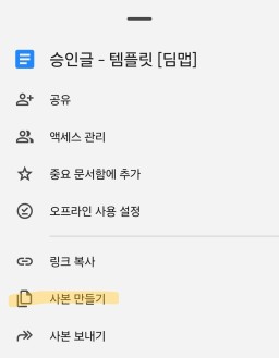 승인글 템플릿 2번째 파일 만드는과정에서  빈템플릿이 아니라 다른사람이 사용중인 템플릿으로 사본만들기가 됩니다