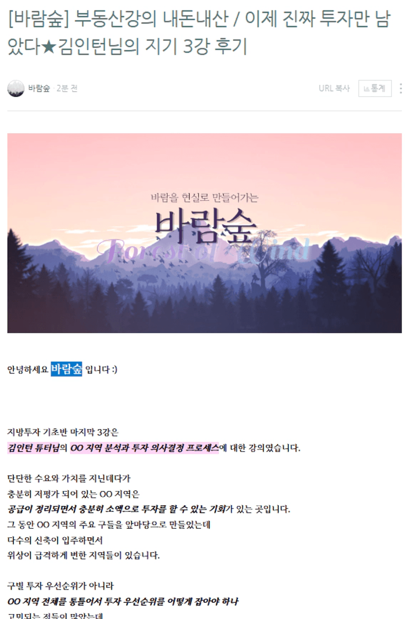 [바람숲] 투자로 이어지는 분위기 임장 (생활권 정리 ppt 양식 공유)