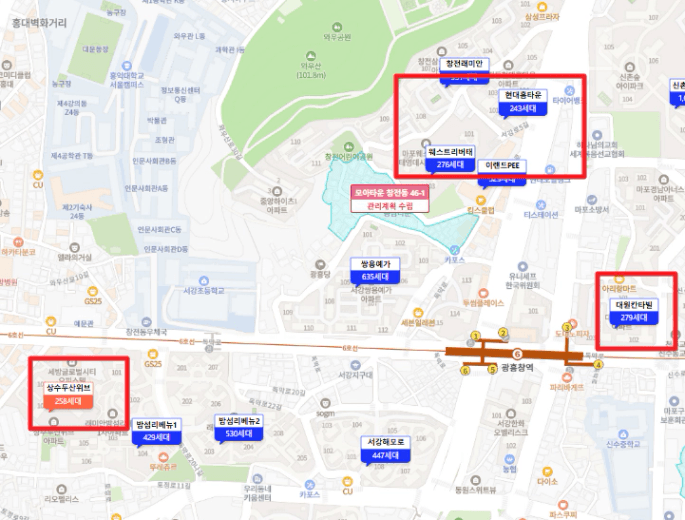 마포구 창전-상수동 일대에는
