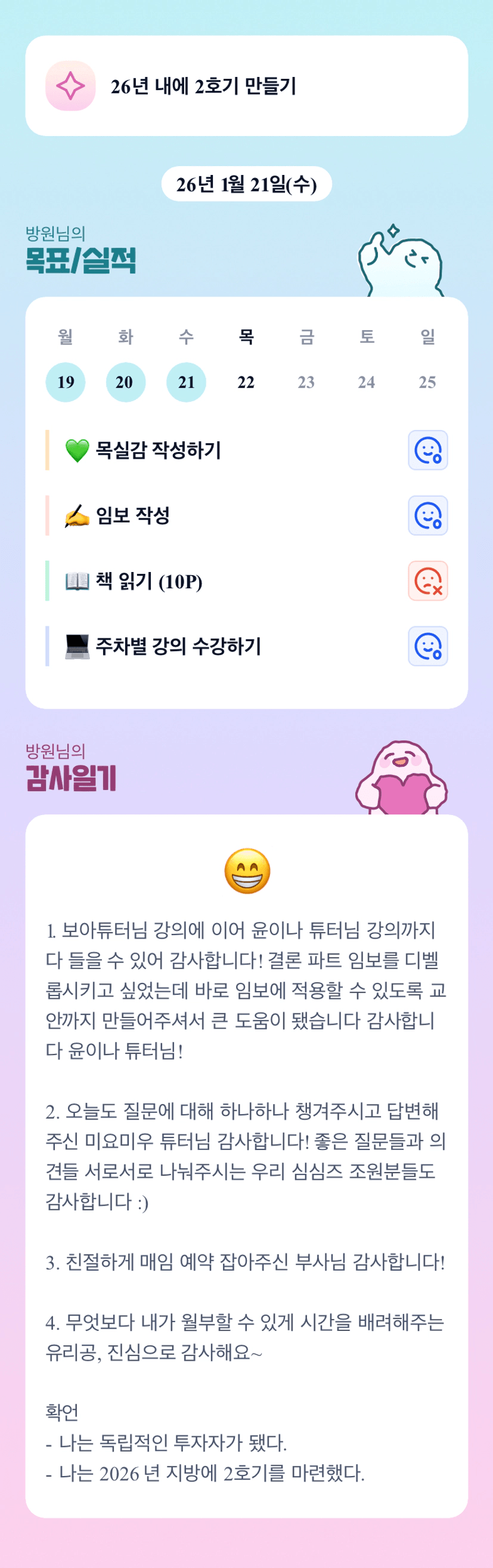 방랑러너 방원님!ㅎㅎ 강의 정말 너무 좋죠~ 방원님 덕에 질문 답변 정리가 착착되어 늘 감사해유ㅎㅎ🩵 파이팅!!