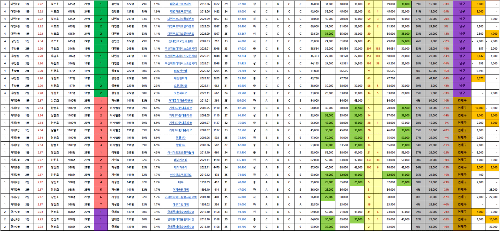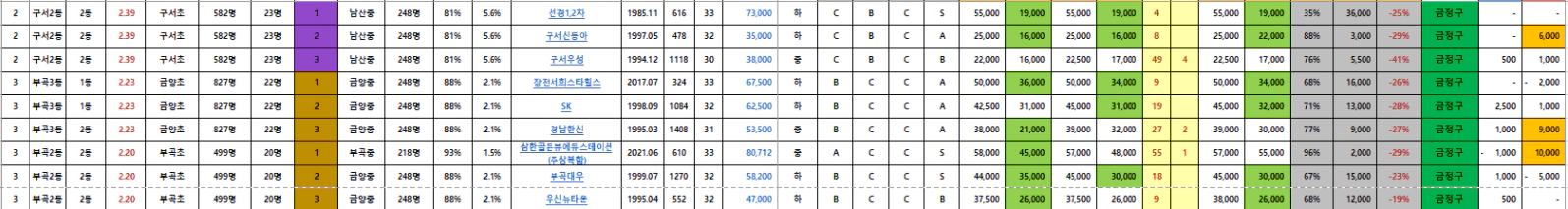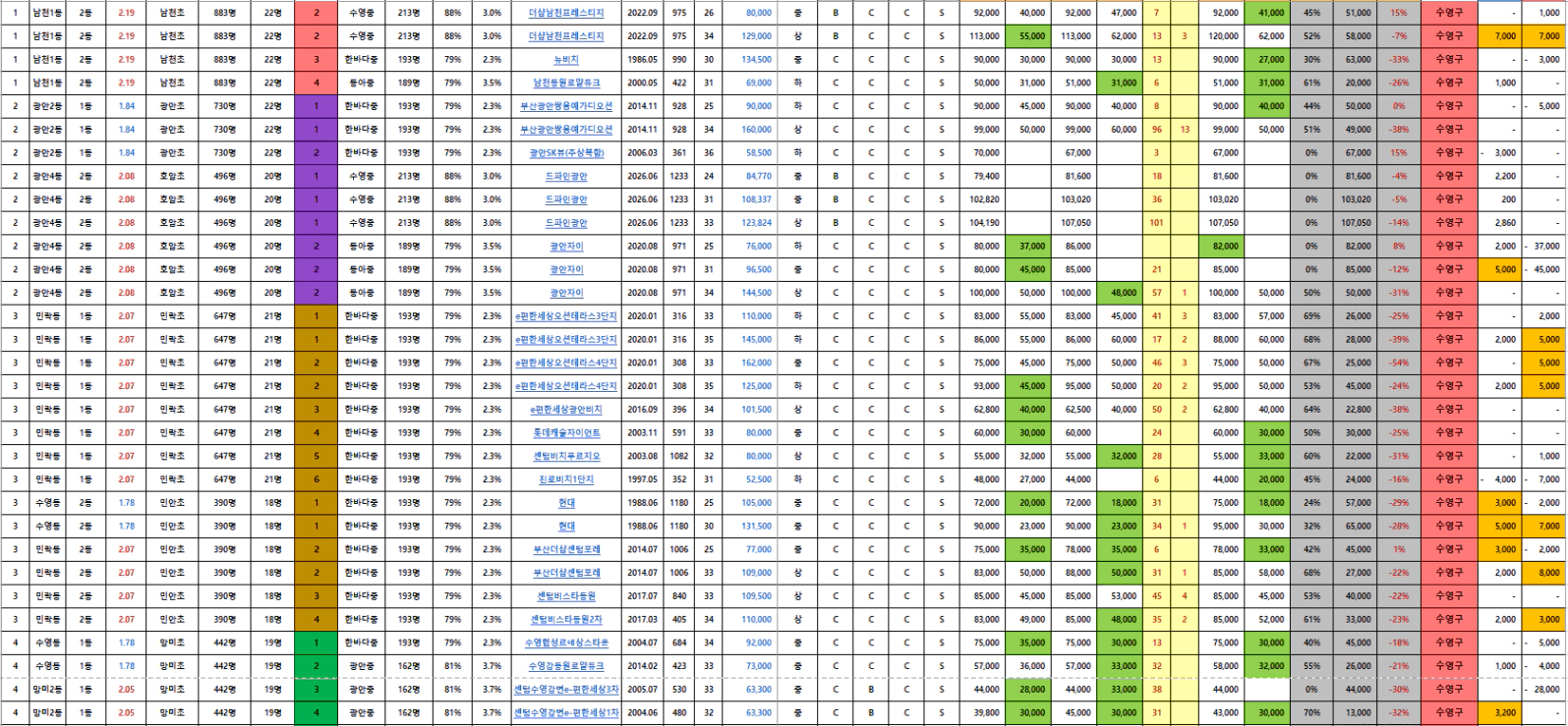 남구는 주로 대연생활권 대남라인의 대장급 단지에서