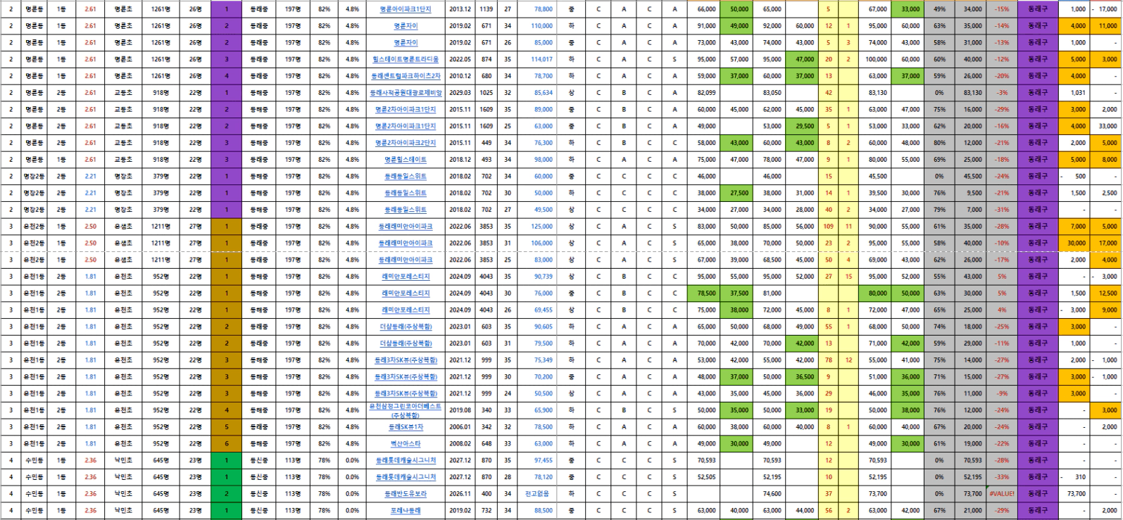 동래구는 수민안락생활권 빼고 다 조금씩 오르고 있으며