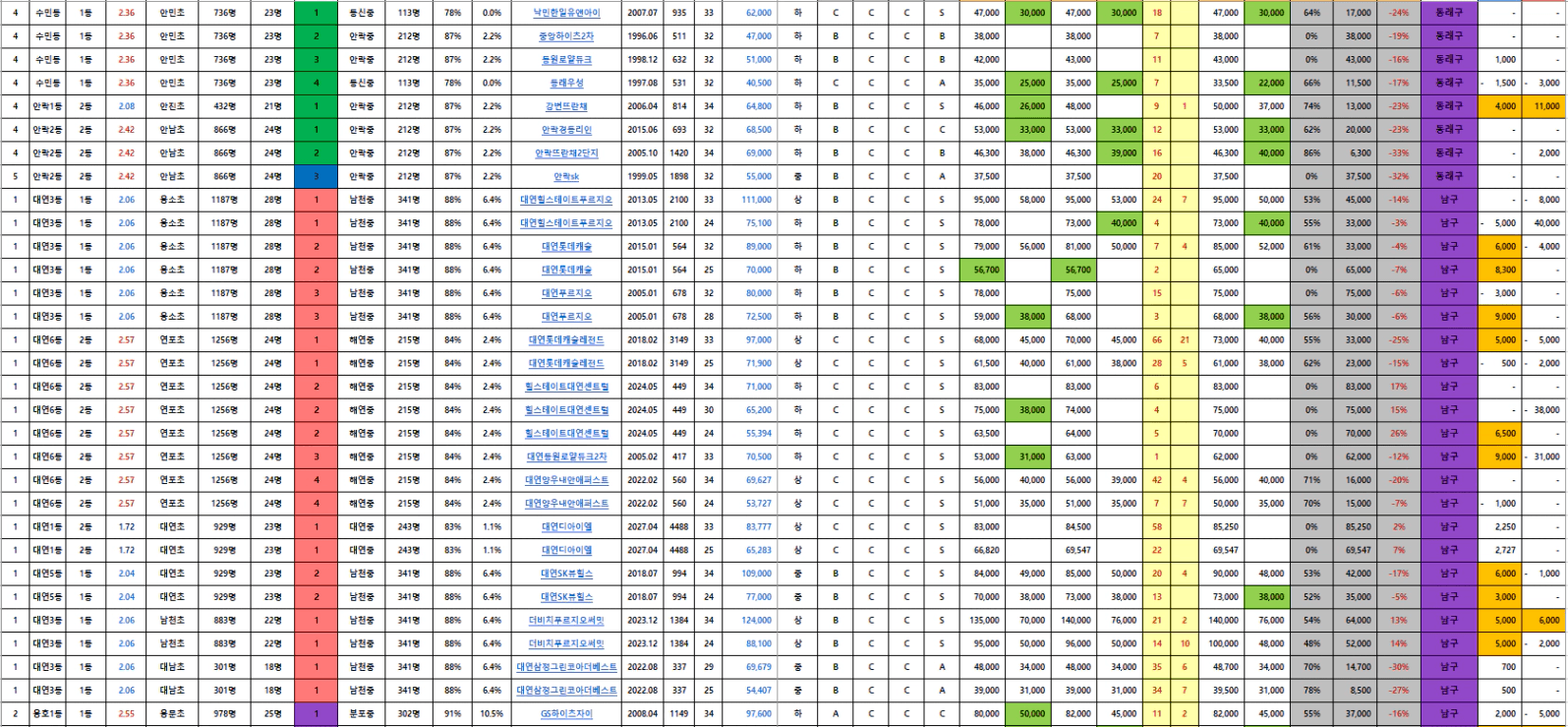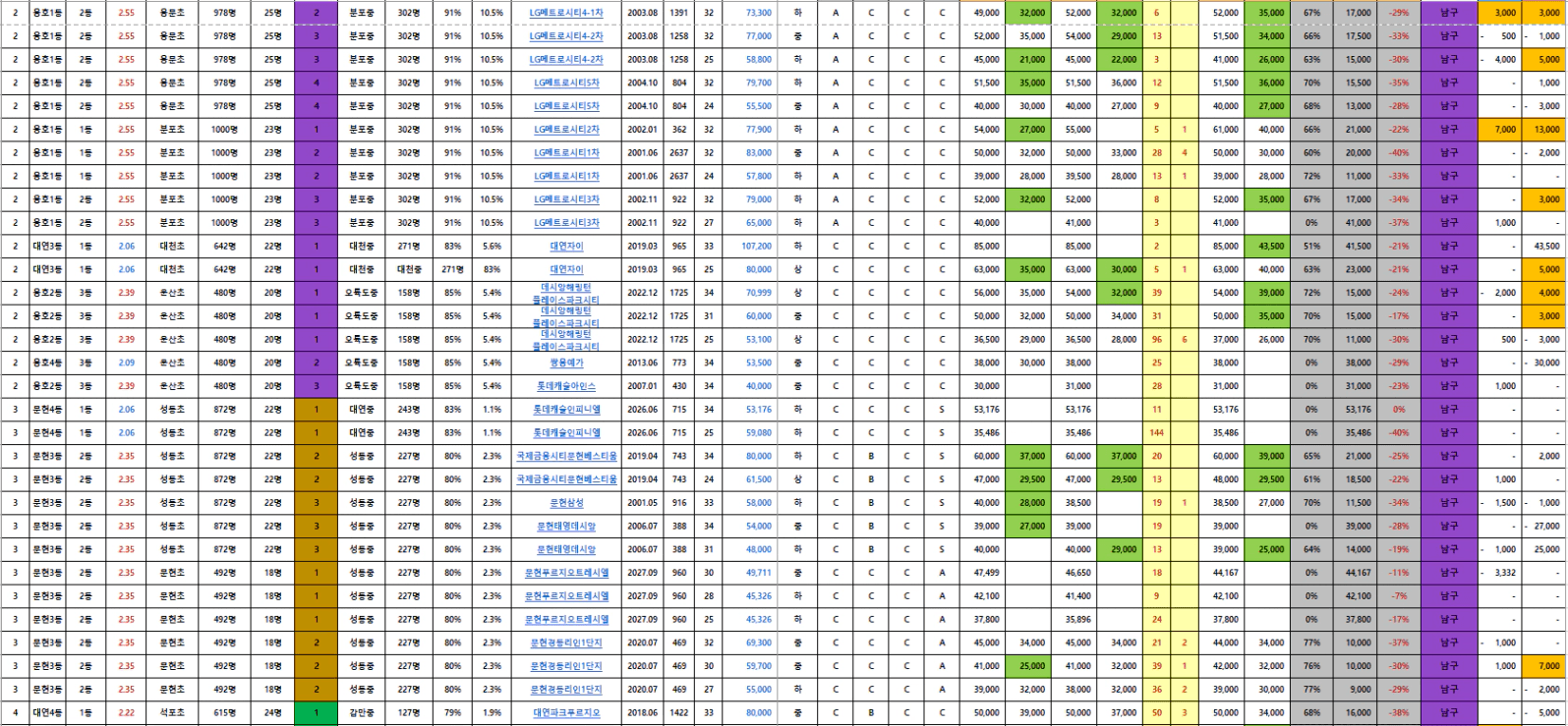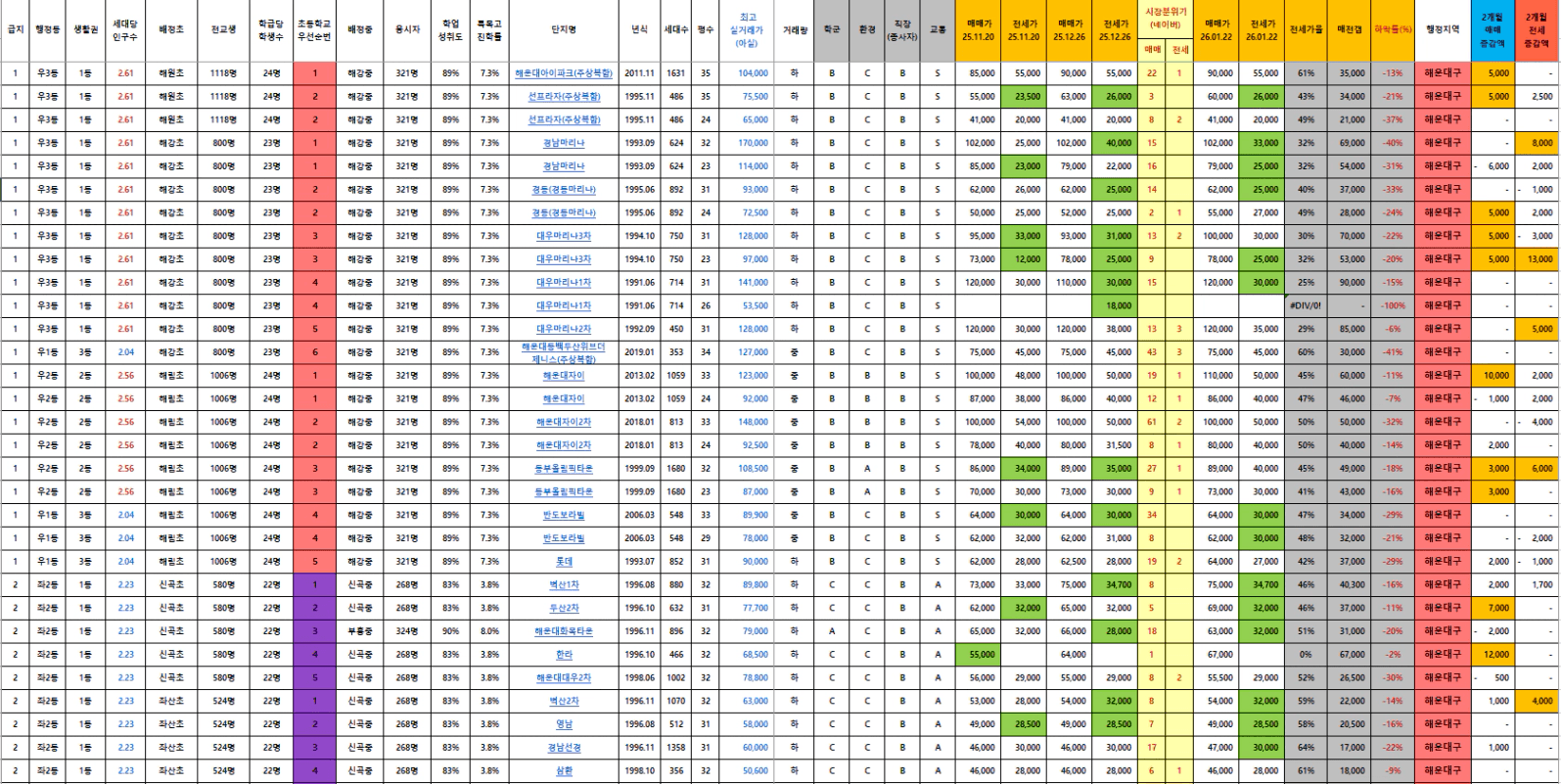 매매가가 오르고 있으며 전세가는 전체가 입지좋은 구축,