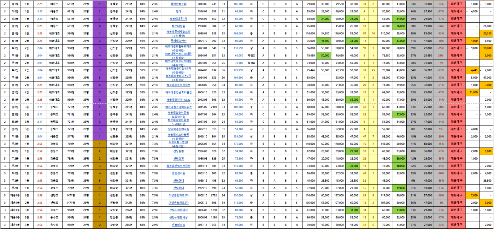 전세가는 우동은 일부 구축, 좌동은 신축으로 오고 있으며