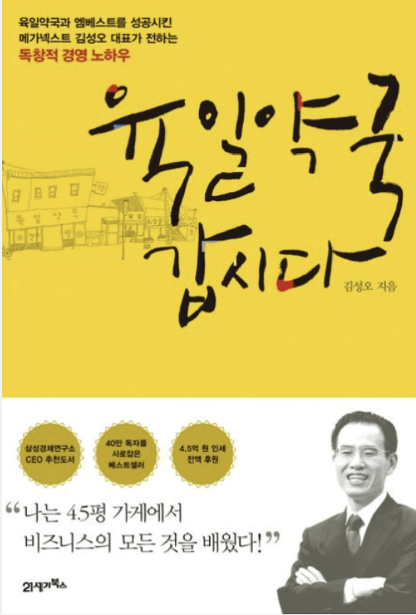 작가도 ‘육일약국 갑시다’라는 말을 처음 할 때는 망설임이 많았다고 한다. 하지만 한번 시도하고 반복하며 결국 생각했던대로 4.5평의 약국을 랜드마크로 만들어 버렸다. 시작과 반복된 시도로 목표를 이루었고 그 목표는 성공이 아니라 성공의 기반이 되었다. 작은 시도로 큰 성과가 생기지 않을 수 있지만 성공을 위한 분명한 한걸음이 될 수 있다고 생각된다.