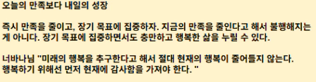 그리고 현재의 쾌락을 줄이고, 미래 목표에 집중하게 되었어요.