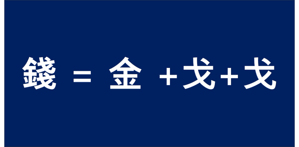 전(錢)은 돈을 나타내는 금(金)과 날카로운 창(戈)과 창(戈) 2개로 이루어져 있습니다.