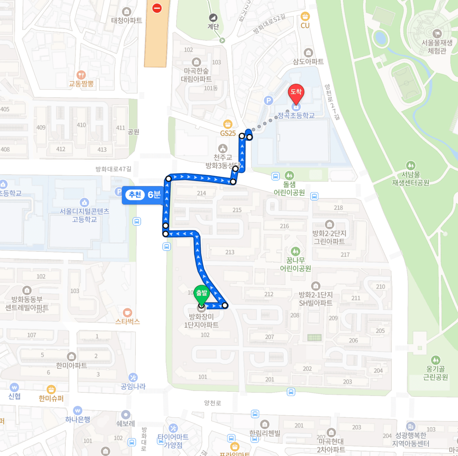 그리고 방화초등학교가 바로 아랫쪽에 위치해있기 때문에 초등학생 자녀가 있다면 통학을 편하게 할 수 있습니다.
