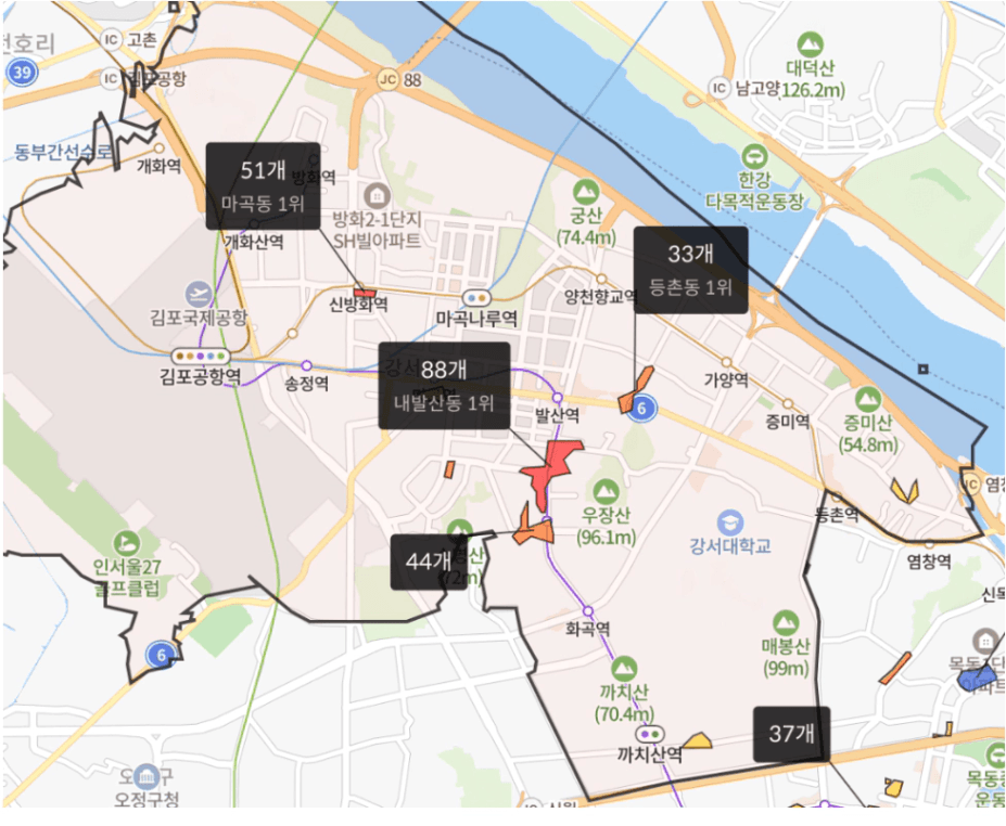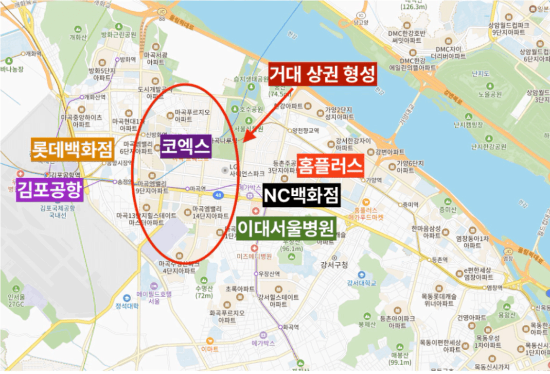 강서구에서는 마곡을 중심으로 거대상권이 형성되어 있다고 볼 수 있어요.