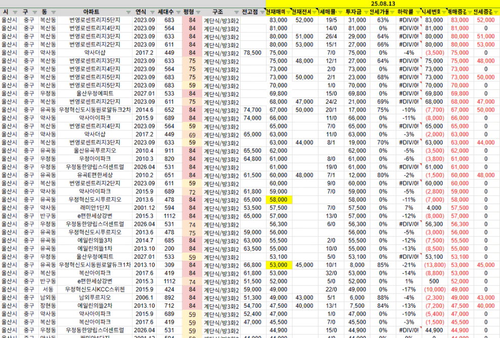 울산 중구는 아직 전고점에 다다른 단지들이 많지 않다.
