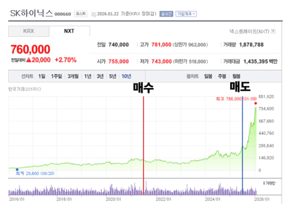 제가 매도하고 한 달이 지난 후 5년간 보유하고 있던 주식의 가격이
