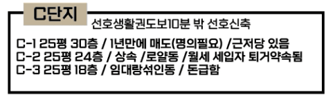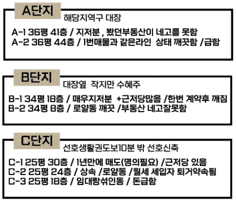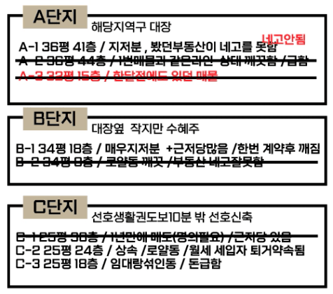 투자하기는힘든 단지엿지만 , 제가 원하는  A,C 단지의 부사님을 소개해주셧습니다 !