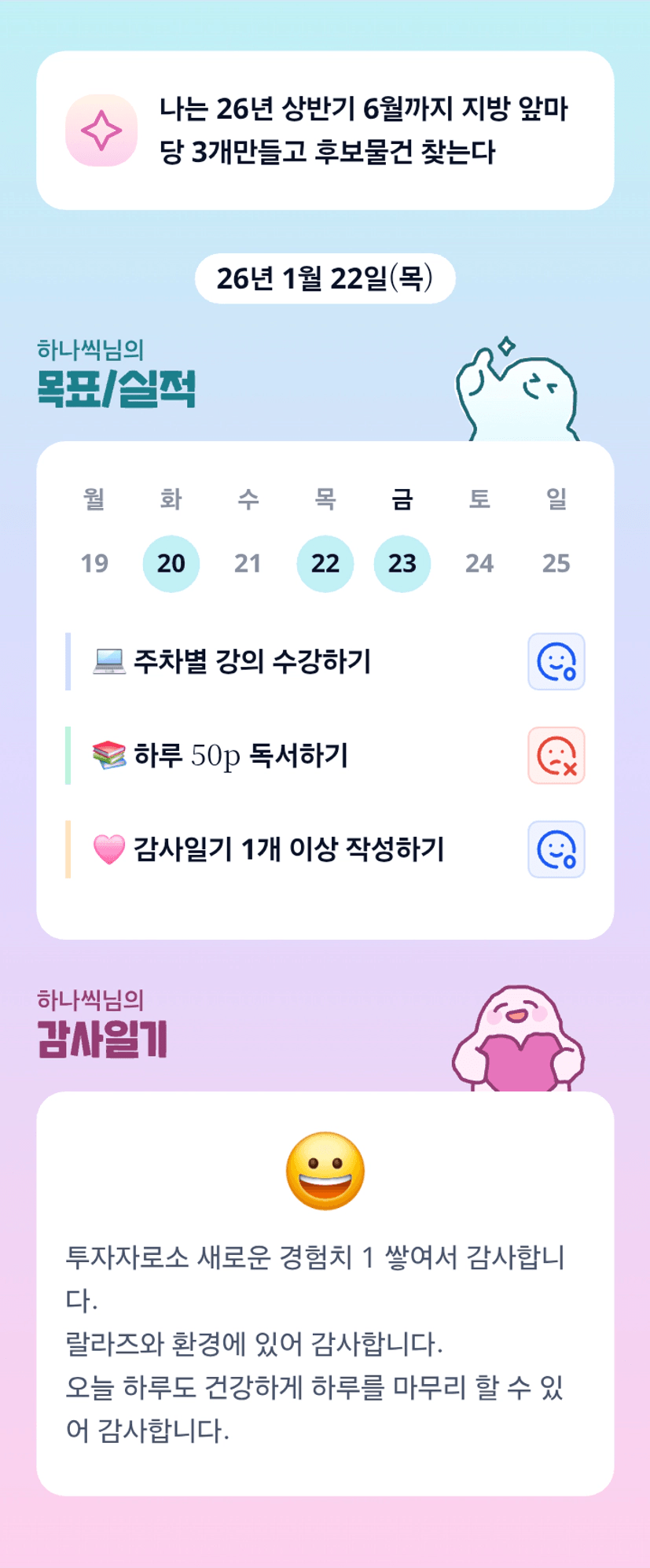 하나씩 쌓여가는 경험치 잘허고 계신다 씪님