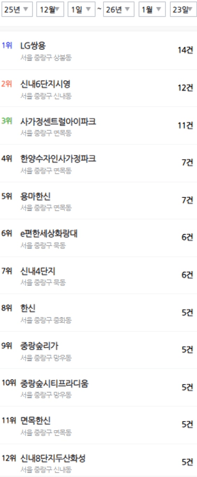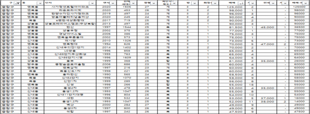 중랑구는 다른 급지들에 비해 거래가 활발하지 않았었어 그런지
