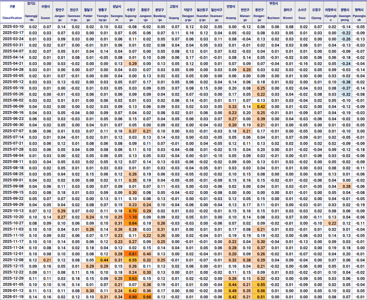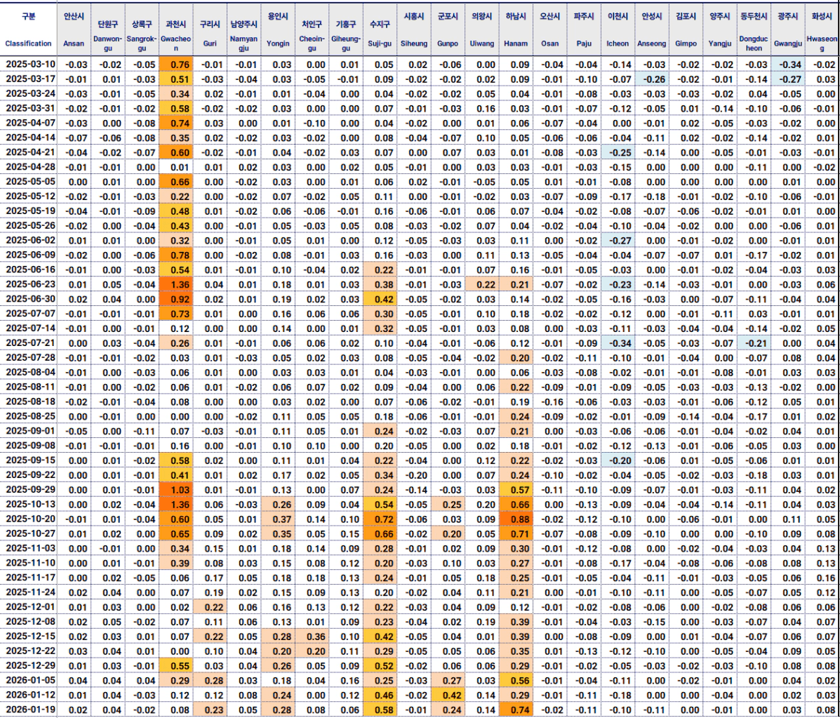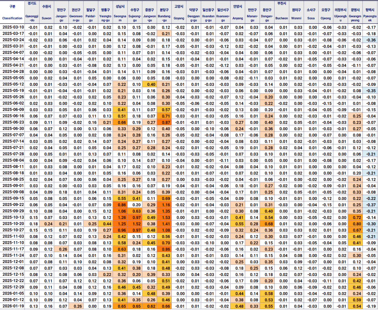 ※ [KB리브온] 지역별 집값 상승률(매매/전세 시계열) : 매주 금요일 업데이트