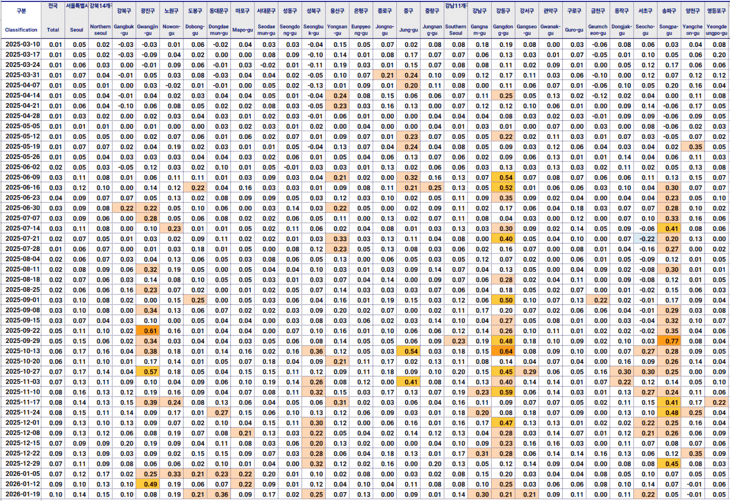 다른 구에서 전체적으로 상승하는 모습을 보이고 있으며