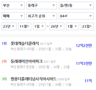 동래구에서 선호도가 빠지는 단지와