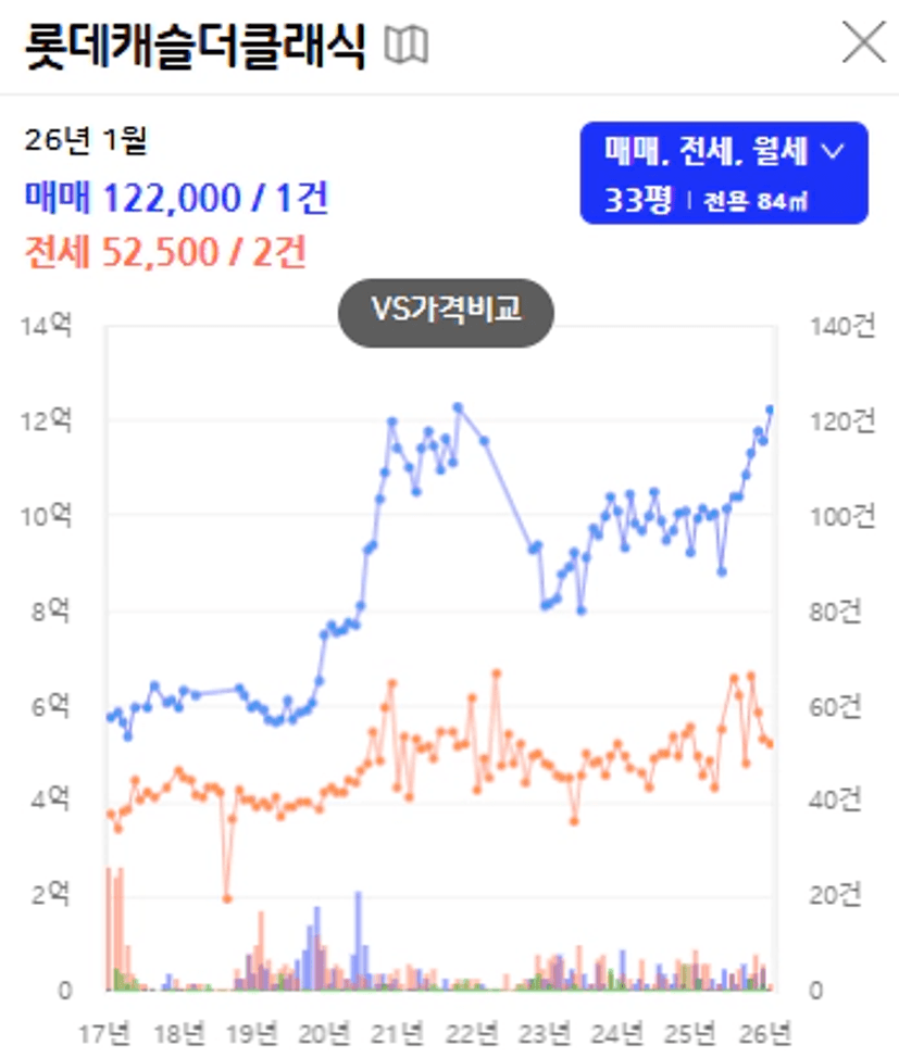 동래구의 대장인 롯데캐슬더클래식의 매매가 흐름을 살펴보면