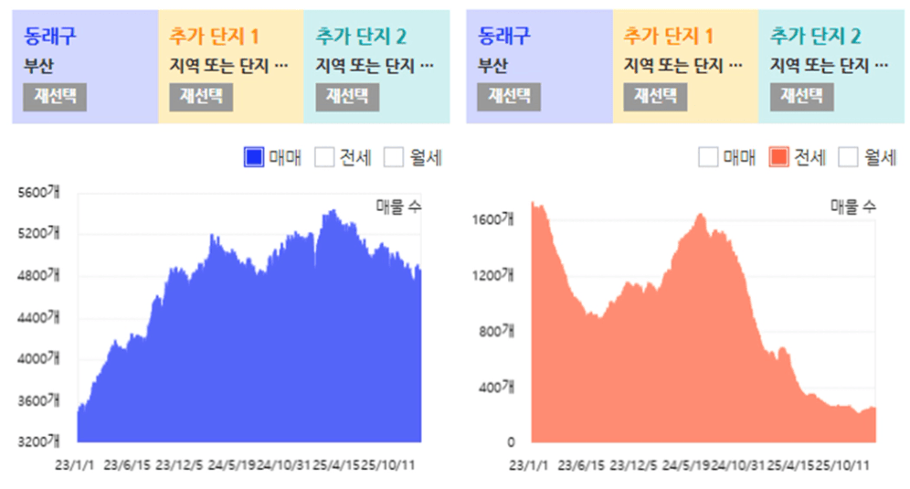 동래구의 경우 매매 개수가 줄어들고는 있으나