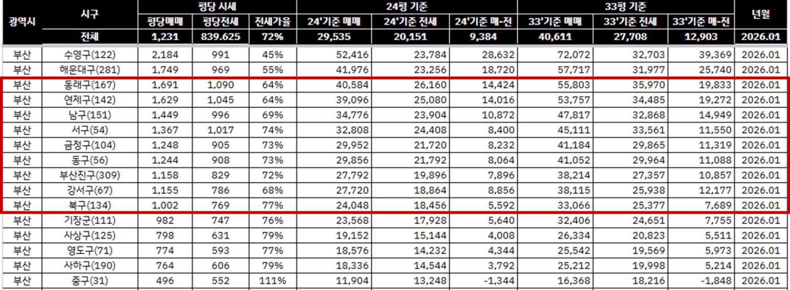 동래구 24평 평균 투자금이 1.4억이고,