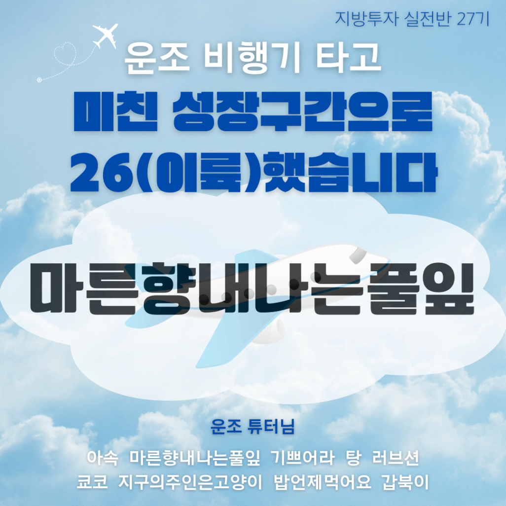 할수 밖에 없는 이 환경에 있음을 하루하루 감사하고 소중하게 생각합니다. 이번달 조이름대로 미친성장구간을 지날수 있게 가이드해주신 운조튜터님,