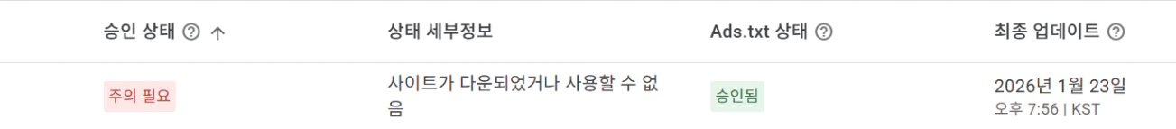 애드센스 승인 거절 (사이트 다운) 대응 문의