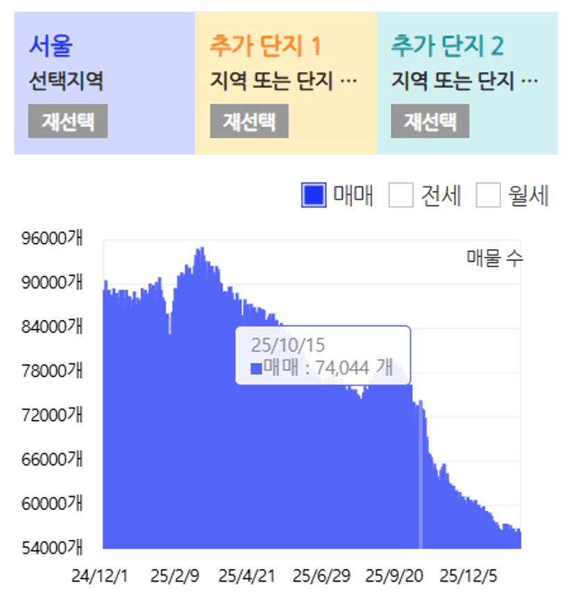 현재 서울·수도권 시장은 투자가 사실상 차단되고 실거주 요건이 강화되면서, 팔 사람이 줄어드는 구조로 굳어졌습니다.매수(수요)는 규제로 걸러졌지만 매도(공급)는 더 강하게 잠긴 상황입니다.
