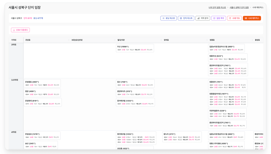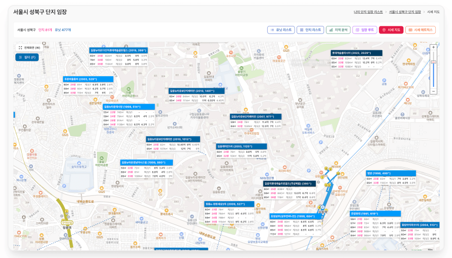 단지별로도 볼수 있고, 단지 내 유닛별로도 볼 수 있습니다.