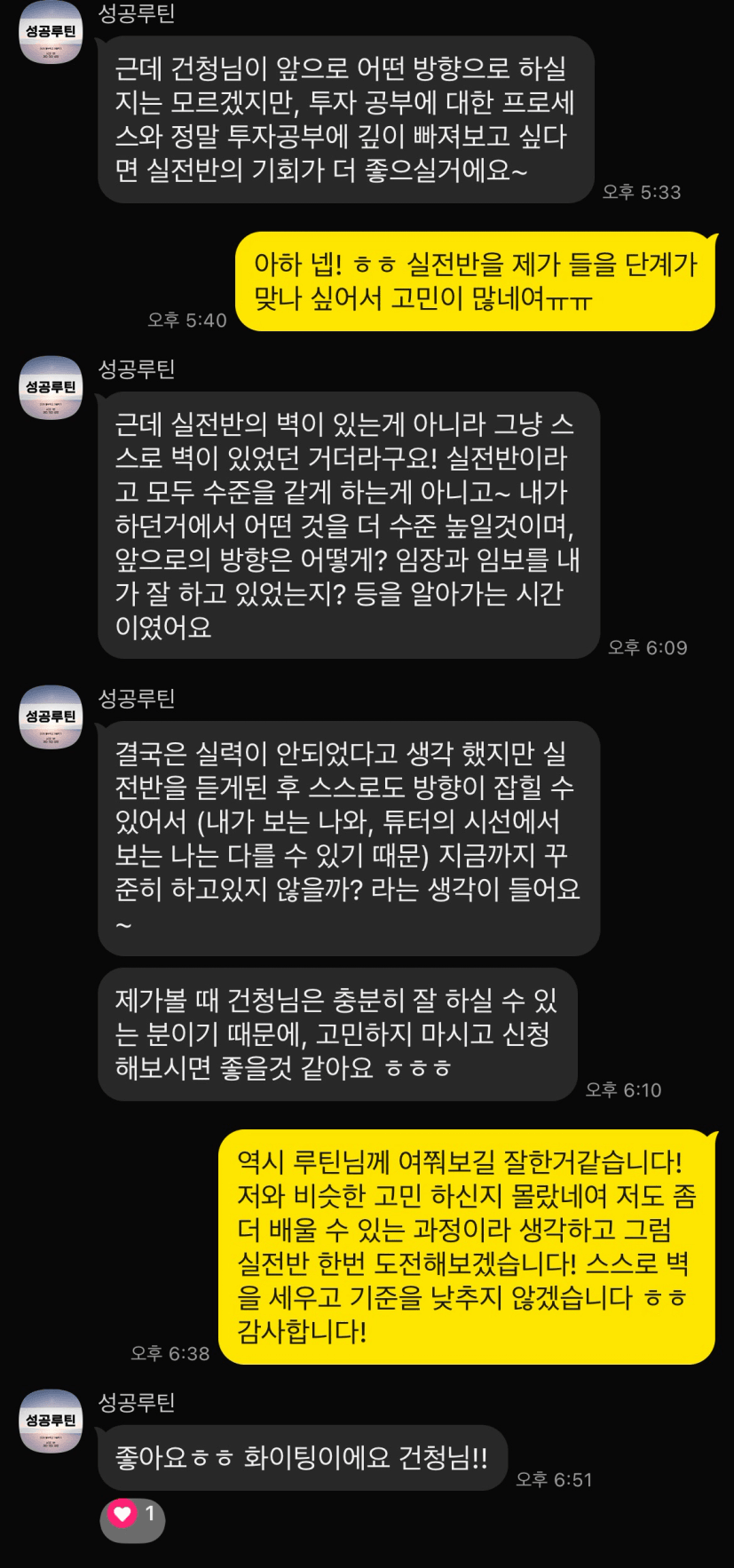 ‘결과보다 도전 자체에 의미를 두자’는 마음으로 실전반 신청을 이어가게 되었습니다.