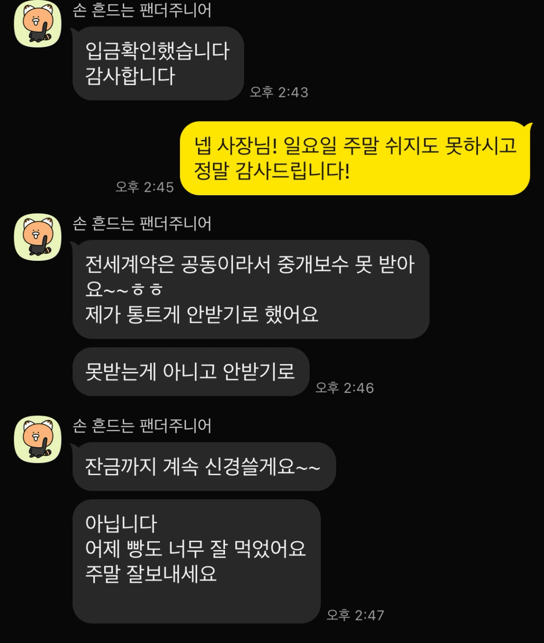 과정 중에는 부동산 사장님과 약간의 마찰이 생기기도 했습니다.
