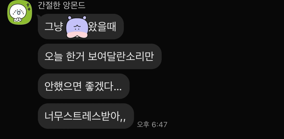 때 마침 여자친구에게서 온 메시지는 제 마음을 더 무겁게 만들었습니다.
