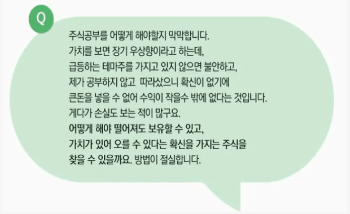 결국 내가 공부하지 않고, 남의 이야기만 듣고 사니 수익이 제대로 날 리가 없다. 회사에 대한 이해(매출구조, 판로, 이익, 재무제표 분석)등을 스스로 하지 않으면 앞으로도 같은 패턴일 것이다. 부동산은 스스로 공부하면서 왜 주식은 공부하지 않는가? 답변을 주심.