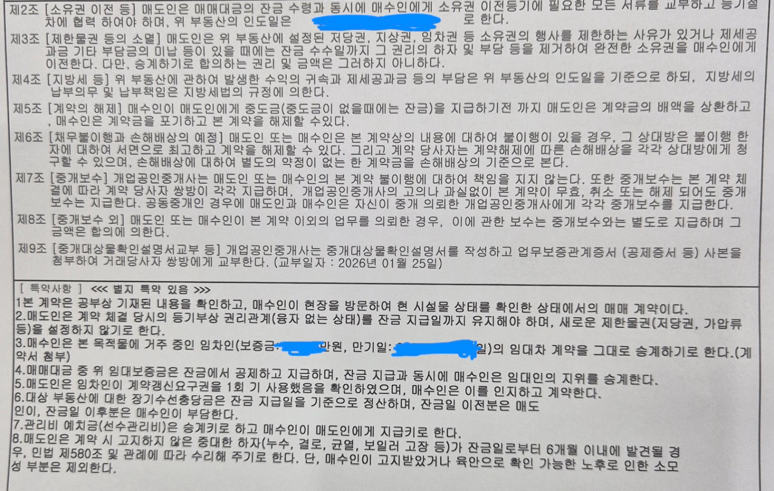 안녕하세요 오로라님 :) 매수계약 너무 축하드립니다! 읽어보았는데 특약상 추가해야하거나 문제될 부분은 없어보입니다🙂