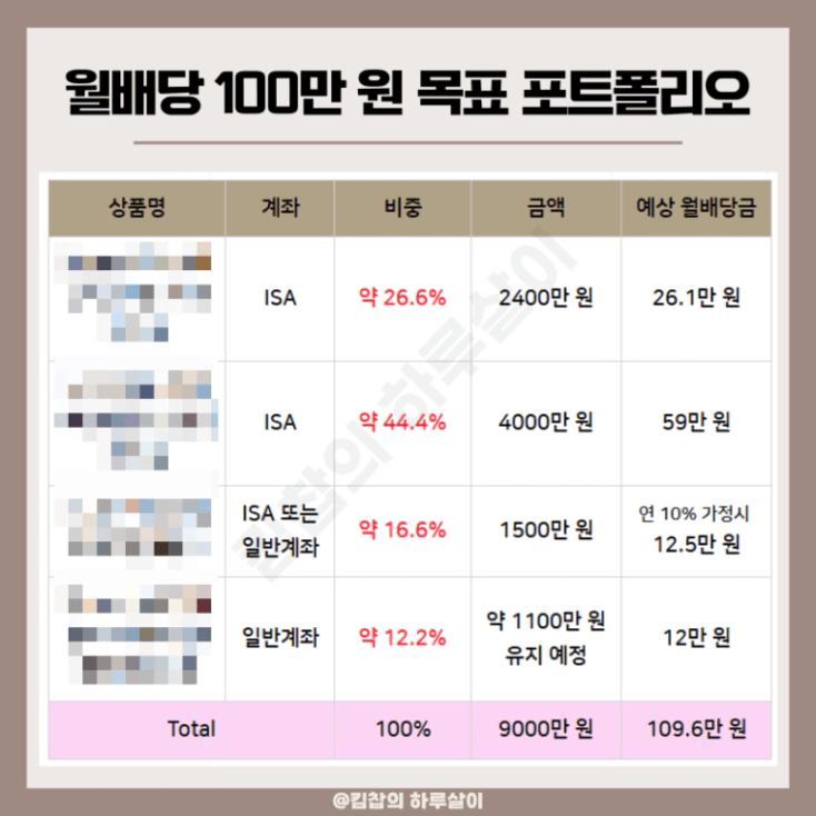 상품명 | 계좌 | 목표 | 예상 월배당금 (1월 기준) |