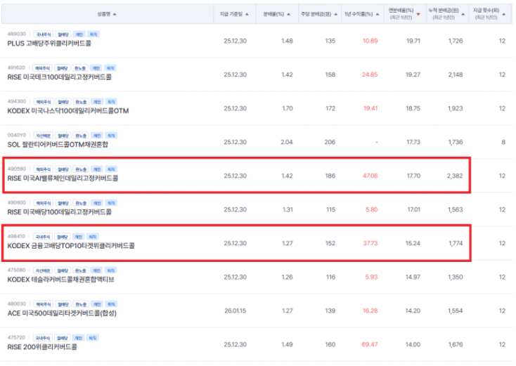 실제로 RISE 고정커버드콜 상품은