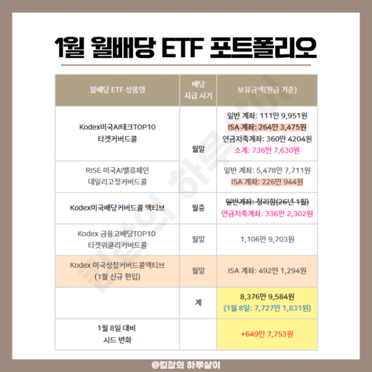 2026년 킴찹의 월배당 ETF