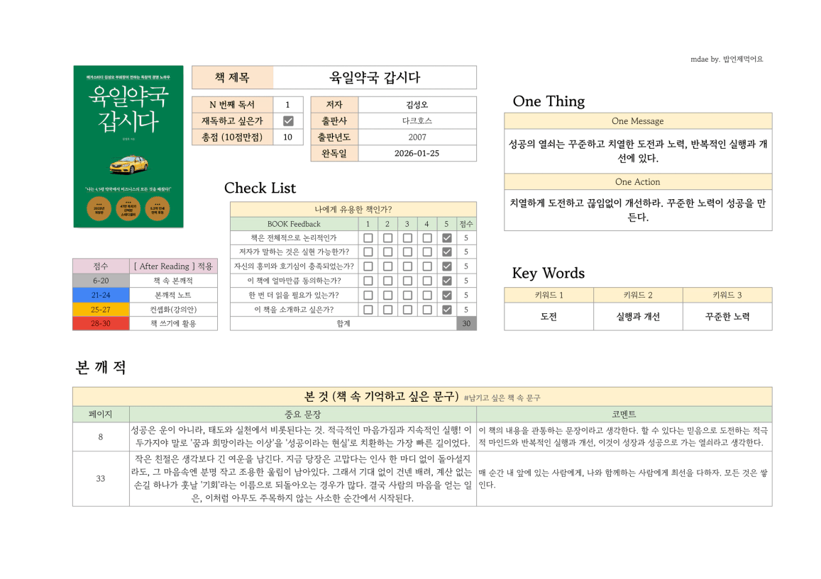 "딱 한 장"으로 끝내는 독서후기 양식 나눔 #구글 스프레드시트 [열중반 43기 2조 밥언제먹어요]