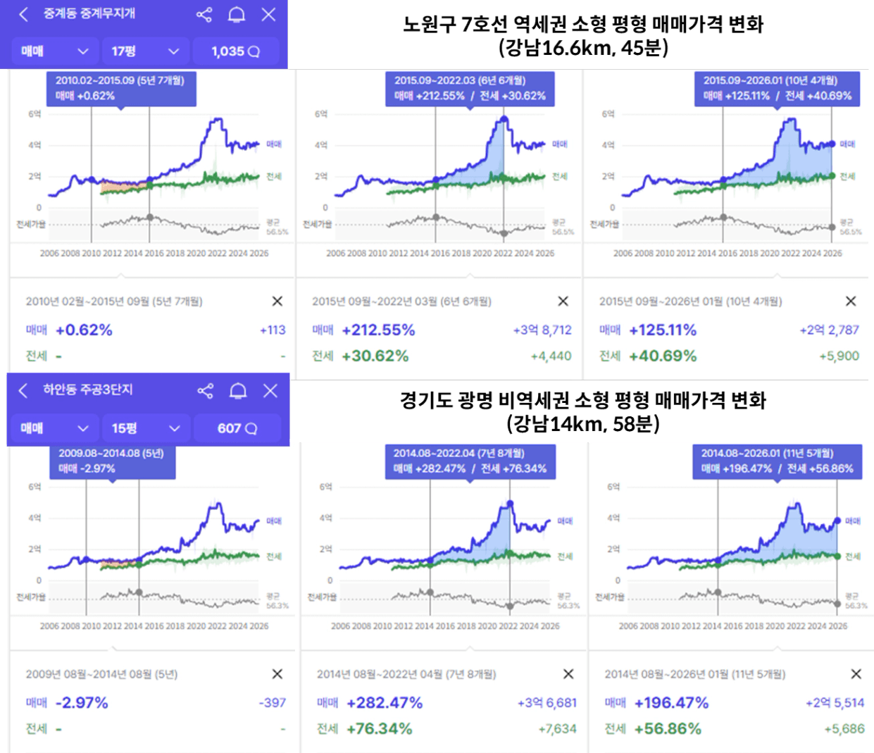 두 단지 모두 지지난 상승장까지 5~6년의 시간이 걸렸지만
