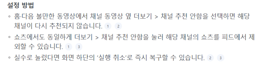 (채널 추천 안함으로 등록한 채널은 직접 검색하지 않는 이상 알고리즘에 안 떠요)