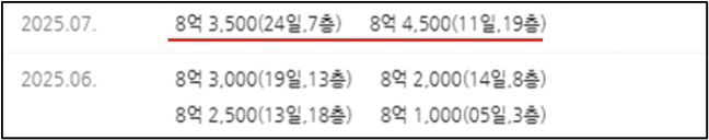 2025년 7월 기준 8.35억, 8.45억 하던 집이