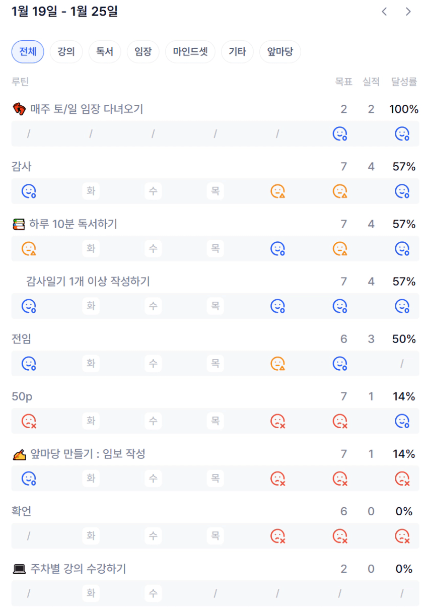 2️⃣ 이번 주 목실감을 작성하면서 느낀점과 더불어 한 주 스스로 어떻게 지냈는지 간단한 회고를 적어보아요 :)