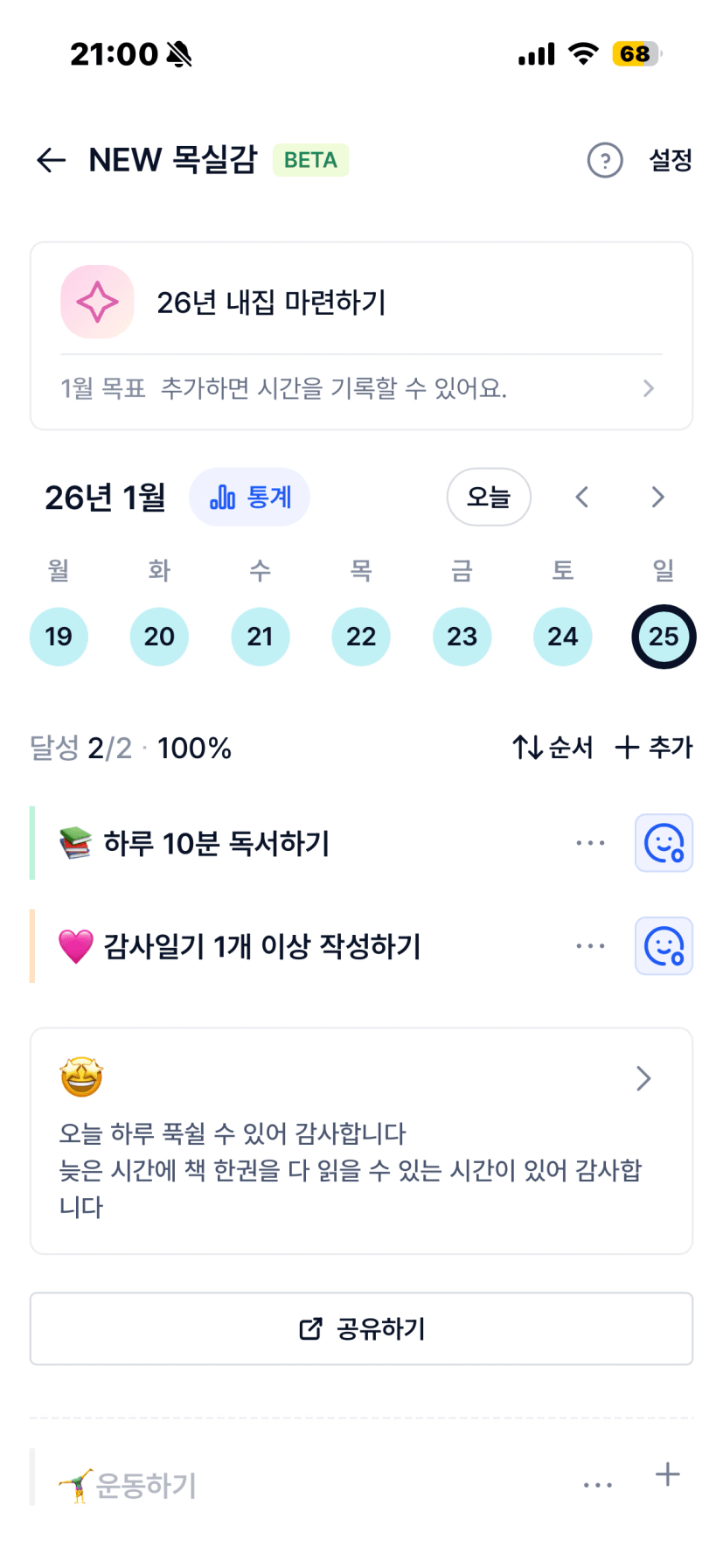 목실감 실천은 꾸준히 진행할것이다