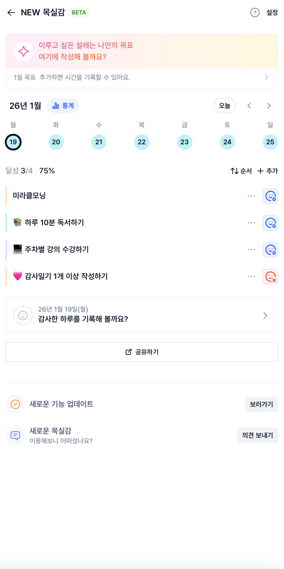 2️⃣ 3주간 목실감을 작성하며 어땠는지 소감도 써보기 ✍🏻