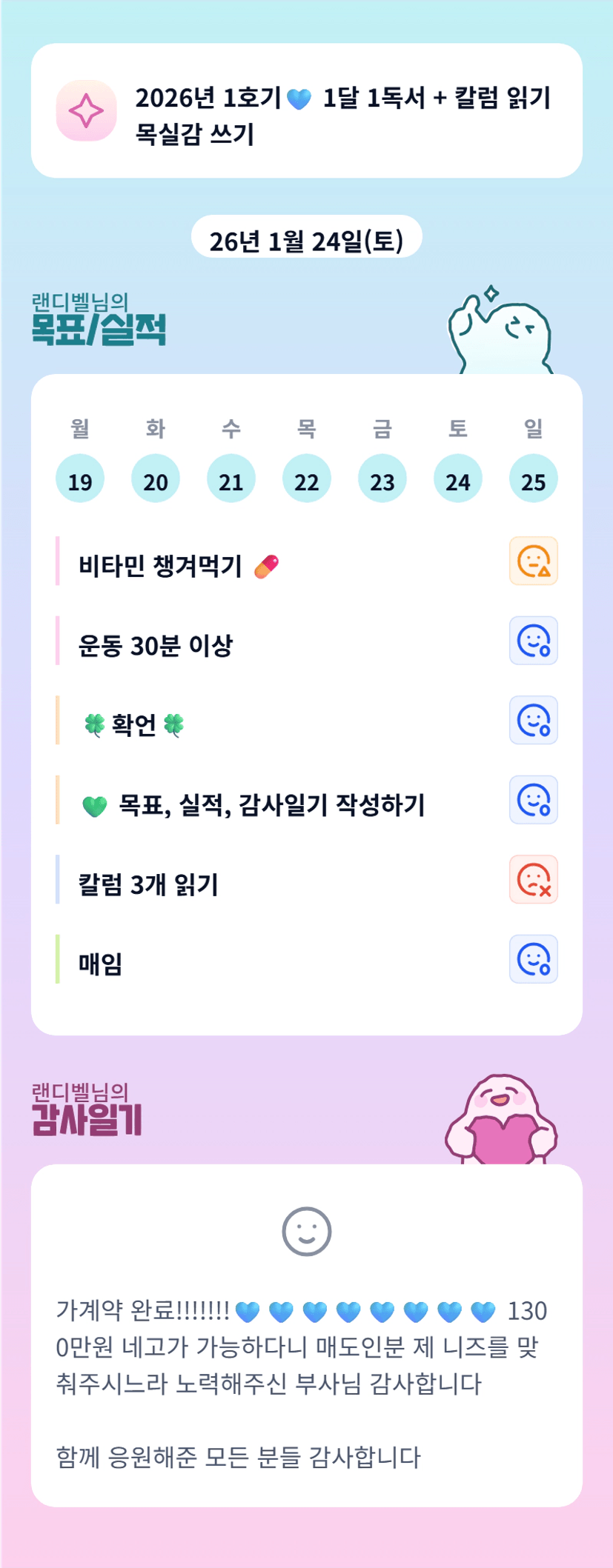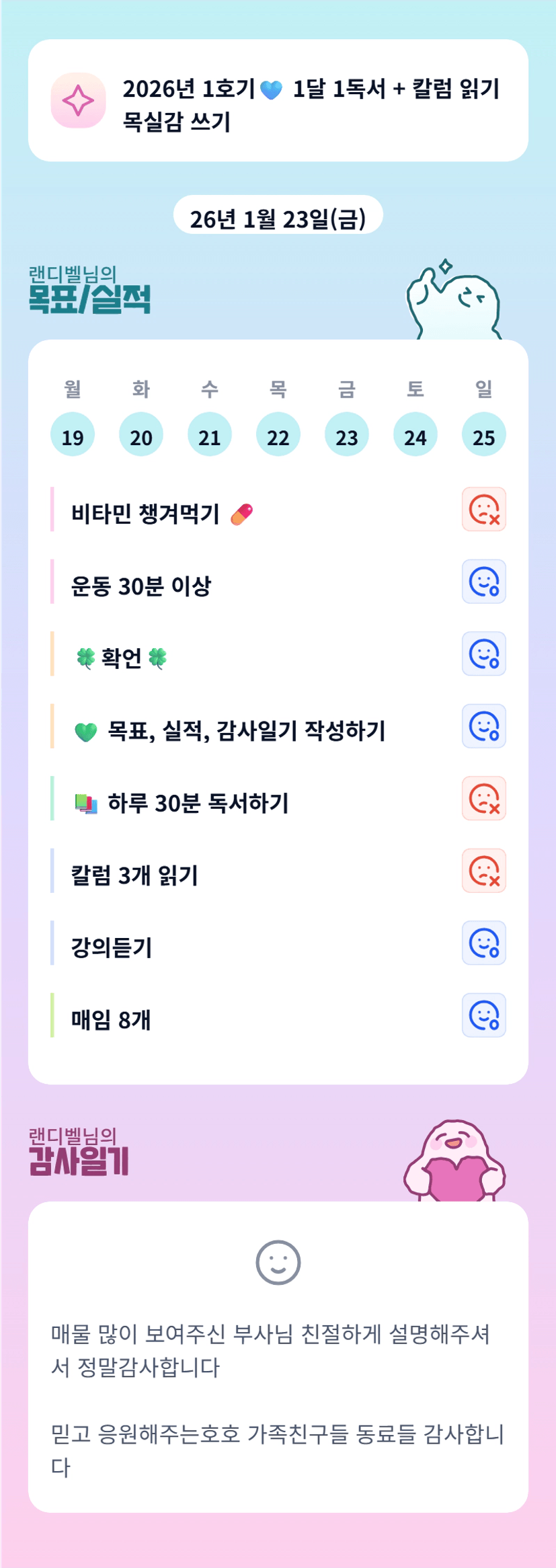 목실감에서 꾸준히 확언을 계속해서 한 대로 이뤄져 정말 감사합니다!