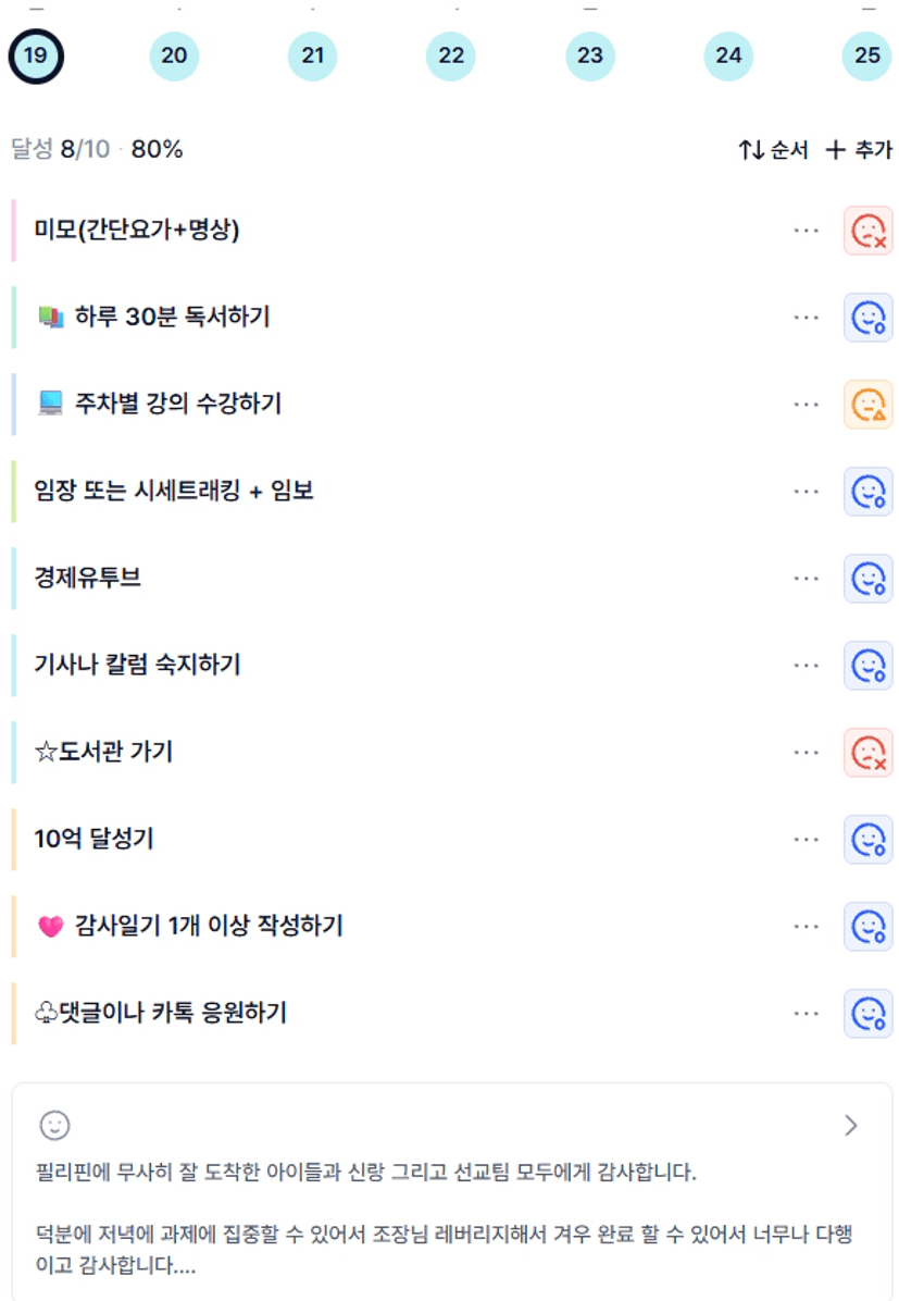 목실감을 하루도 놓지 않아 참 잘했습니다.