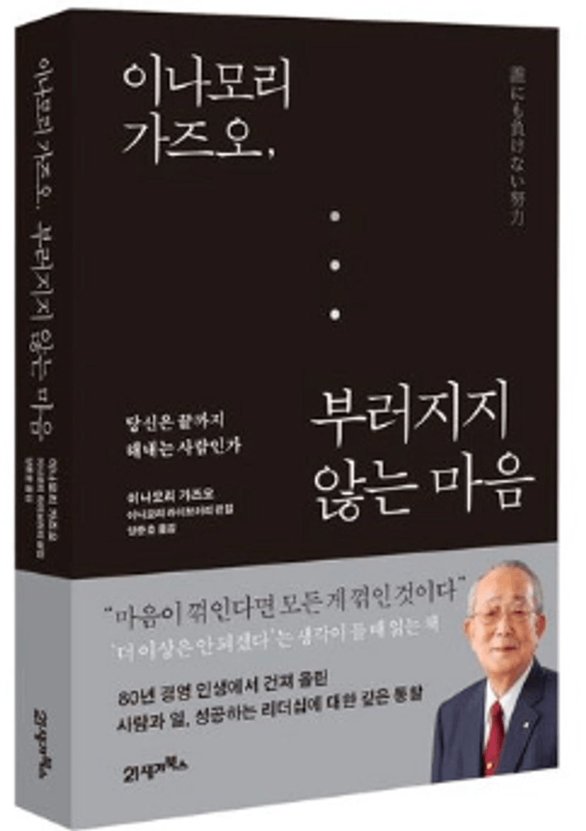그런 의미에서 최근에 읽고 있는 책 중에 이나모리 가즈오님의 [부러지지 않는 마음]이 참 마음을 다잡아주는 좋은 책이라고 생각합니다. 놓고 싶어지는 순간에 이 책을 읽으면 다시 해낼 수 있다는 자신감이 생기기 때문입니다.
