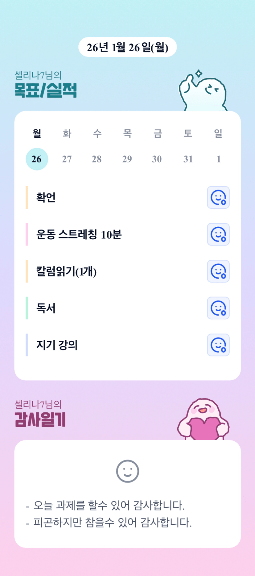 [셀리나7] 2026. 1. 26(월) 목실감
