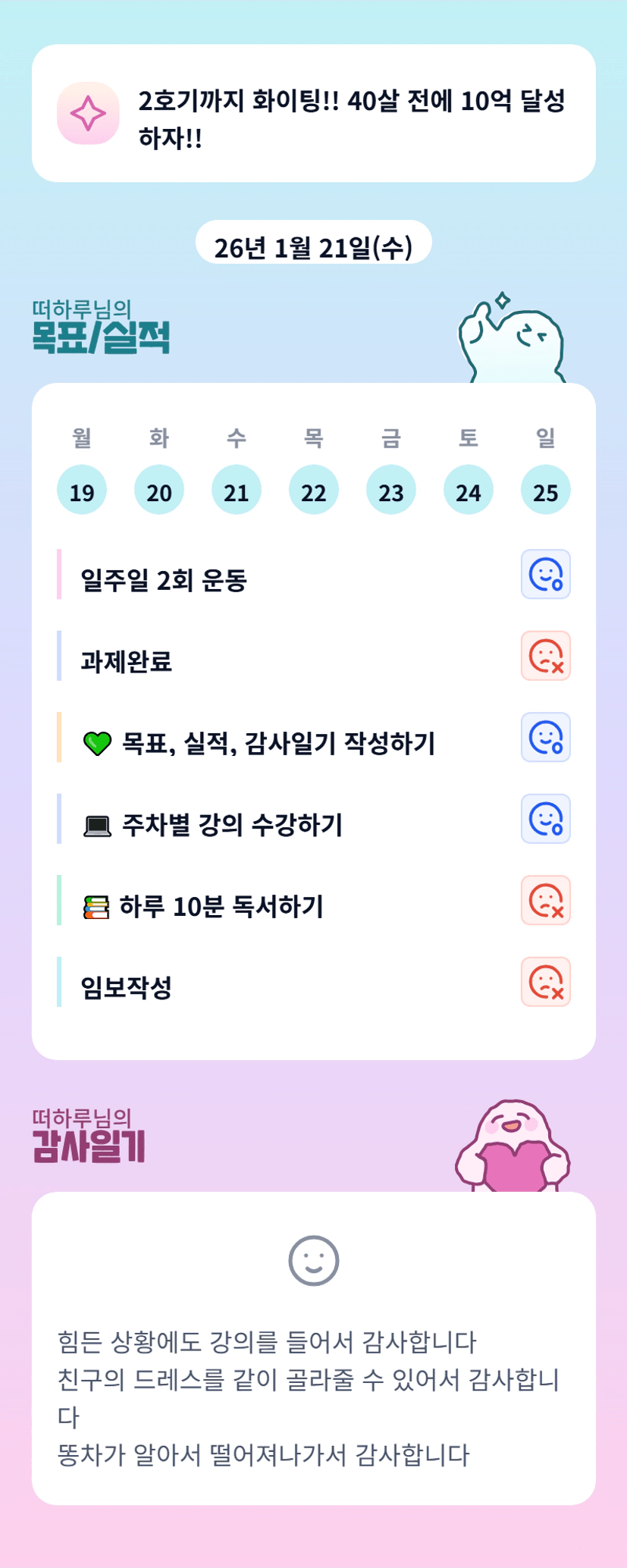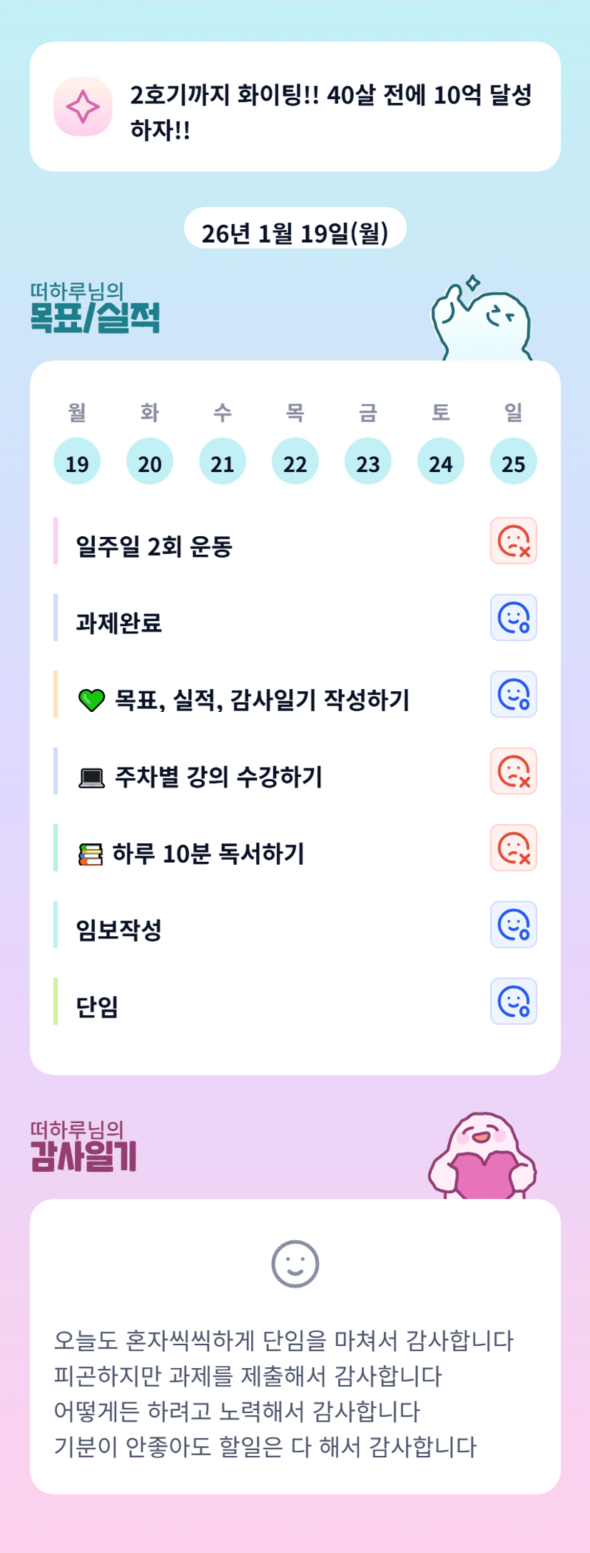 2️⃣ 이번 주 목실감을 작성하면서 느낀점과 더불어 한 주 스스로 어떻게 지냈는지 간단한 회고를 적어보아요 :)