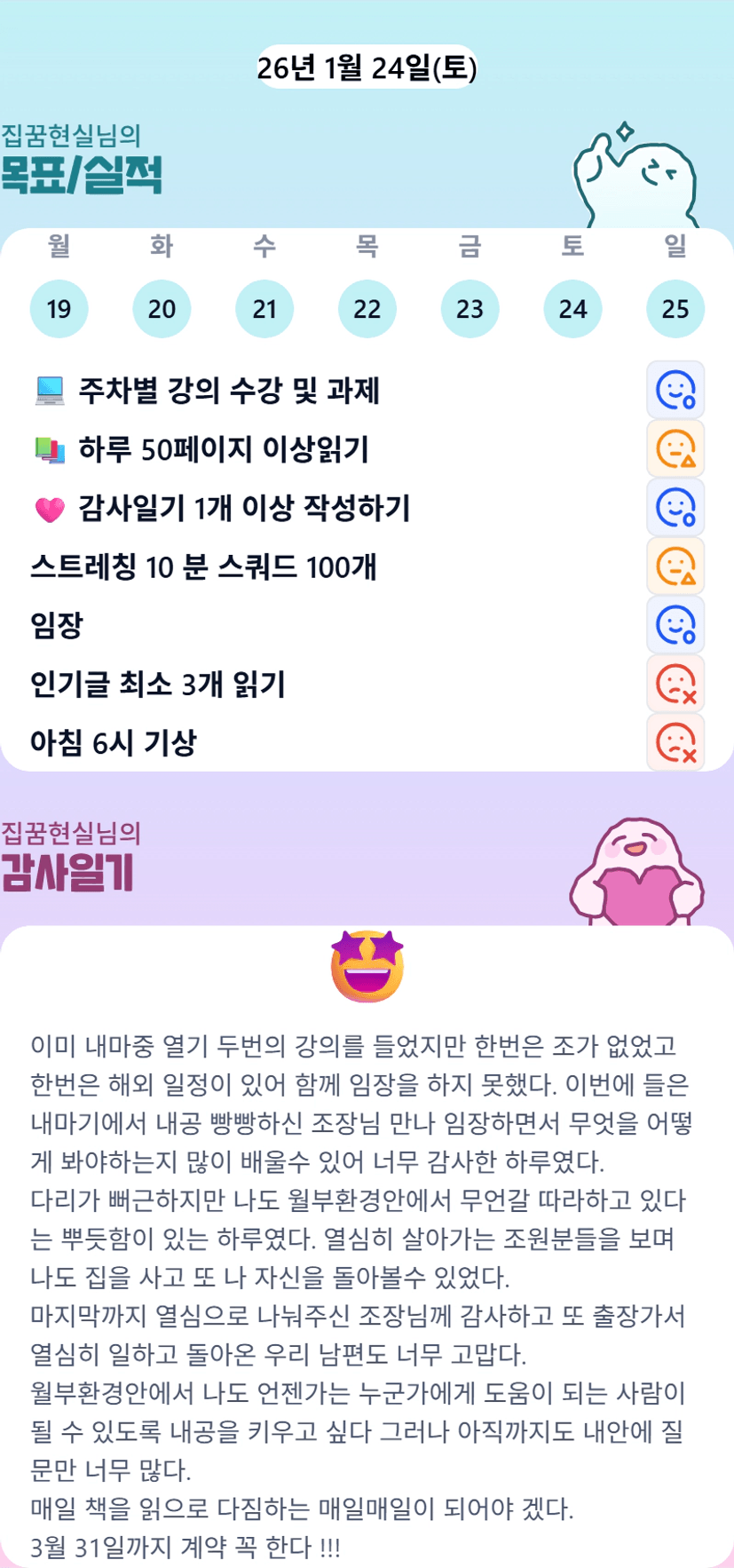 제대로 목실감을 못쓴날도 많았지만 쓸수 있도록 노력하며 나를 돌아볼 수 있었다.